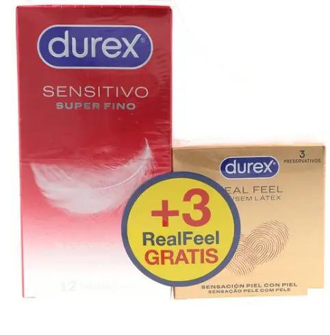 DUREX SENSITIVO SÚPER FINO PARA MAYOR SENSIBILIDAD 12 PRESERVATIVOS + 3 REAL FEEL DE REGALO