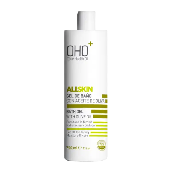 ALL SKIN Gel de baño, formulado con Aceite de Oliva OHO, alantoína y salvia para todo tipo de pieles, incluso las más sensibles.