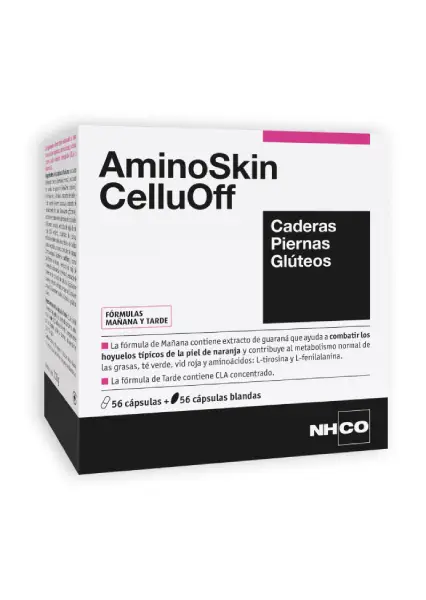 NHCO Nutrition® ha desarrollado AminoSkin CelluOff Mañana & Tarde para ayudar a estilizar la figura, especialmente en las caderas, los muslos o piernas y los glúteos.