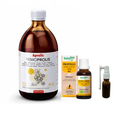 YEMOPROLIS 500 ml & HERBALGEM gotas 50 ml + Spray Aplicador garganta de regalo